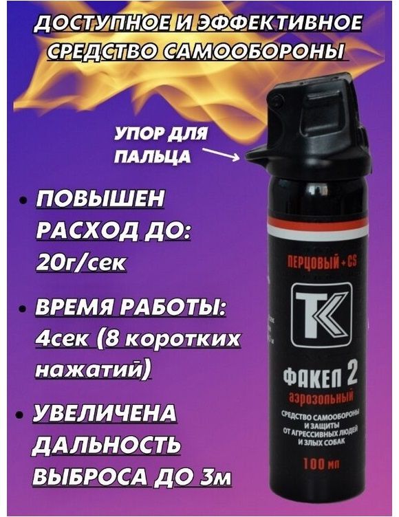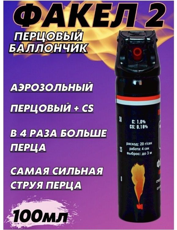 - «Факел 2» один из самых эффективных компактных средств самозащиты, обновленный вариант содержит в своем составе в четыре раза больше экстракта жгучего перца. При этом дальность эффекта распыления данного баллончика достигает трех метров, что превышает дальность эффекта многих других средств самообороны аэрозольного типа. За одну секунду расходуется двадцать грамм данного средства!