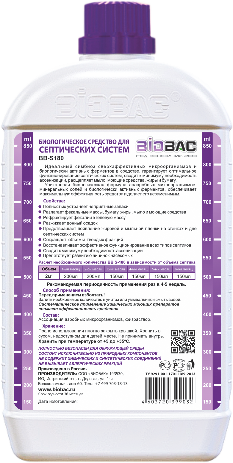 1 * Бактерии для септиков BIOBAC BB-S180.