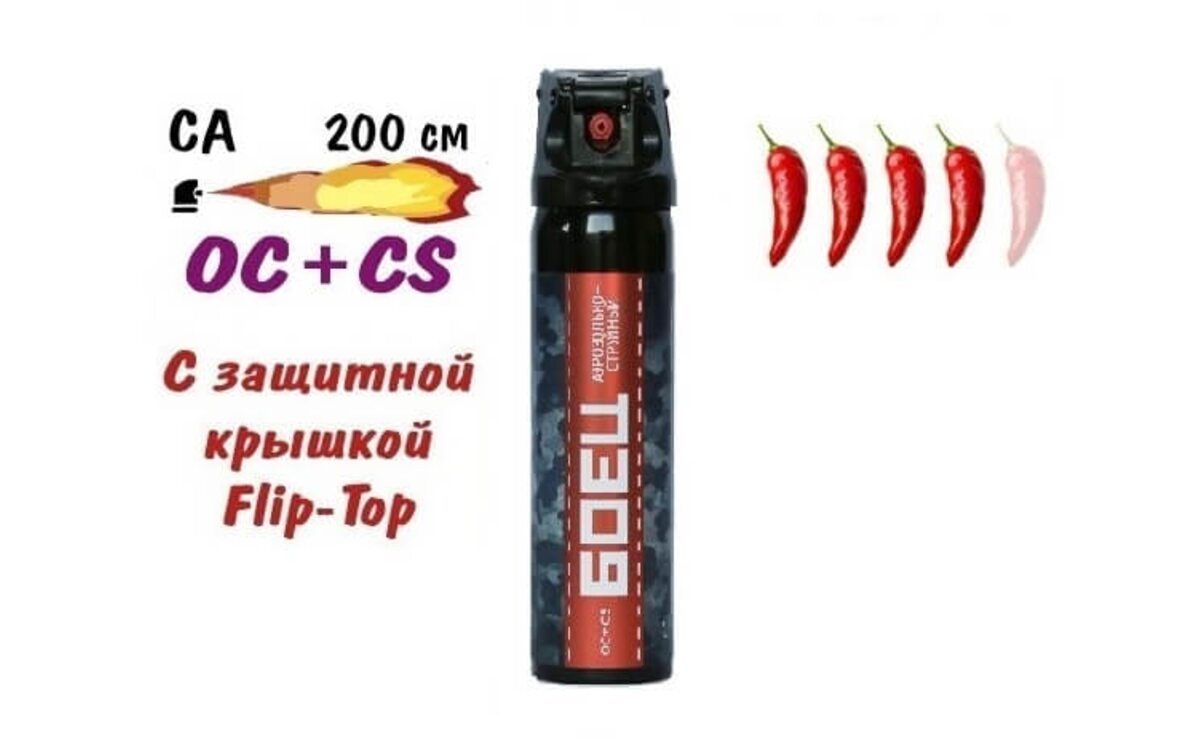 - Газовый баллончик «Боец» аэрозольно-струйный, 100 мл вобрал в себя преимущества обоих систем, как струйных, так и аэрозольных. Новичкам будет проще пользоваться, так как он распыляет газ на расстояние до 2 метров, а область поражения составляет 33 см в диаметре.