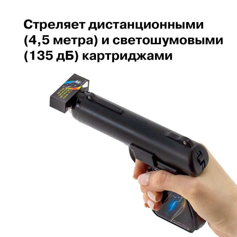 - Стреляющий картридж «БТЭР» передаёт разряд шокера на расстояние до 4,5 метров. Вы можете поразить противника, даже не подпустив его близко к себе.