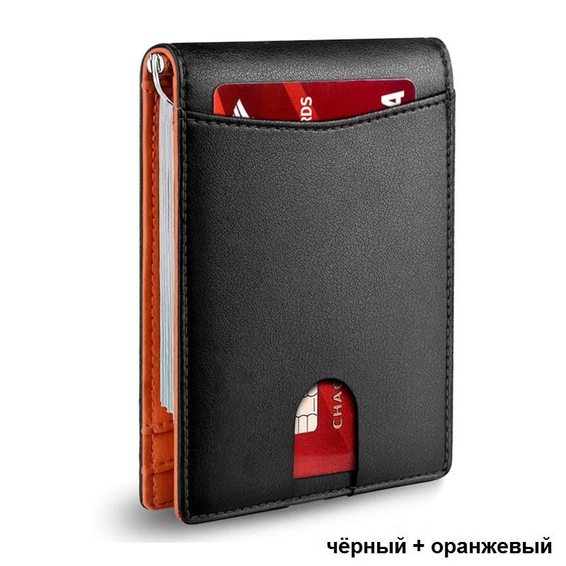 - Тонкий бумажник с зажимом для денег и RFID блокировкой.