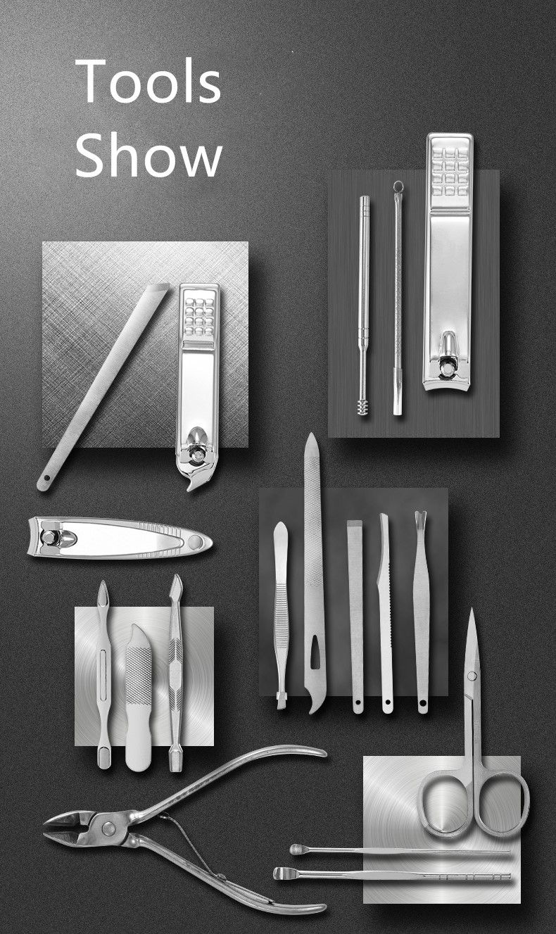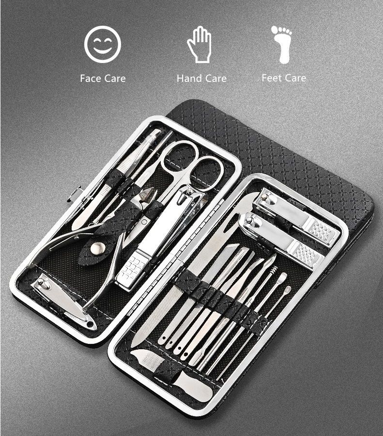 - Профессиональный маникюрный / педикюрный набор инструментов из нержавеющей стали 19 в 1.