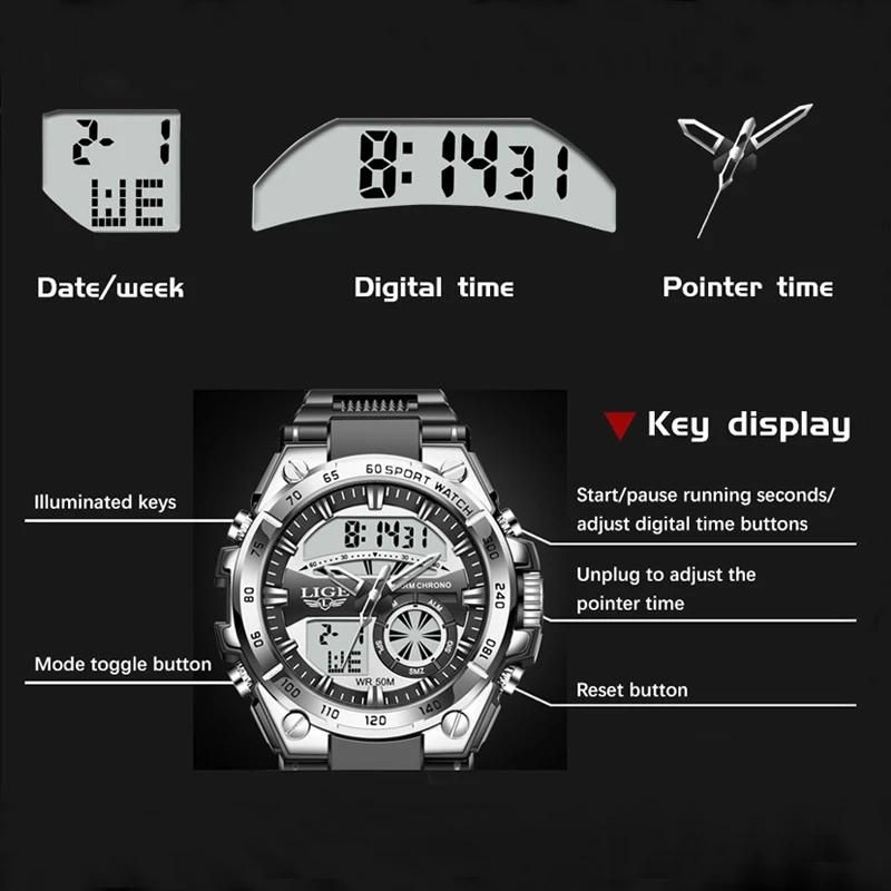 1 * Мужские кварцевые цифровые наручные часы LIGE 8971.