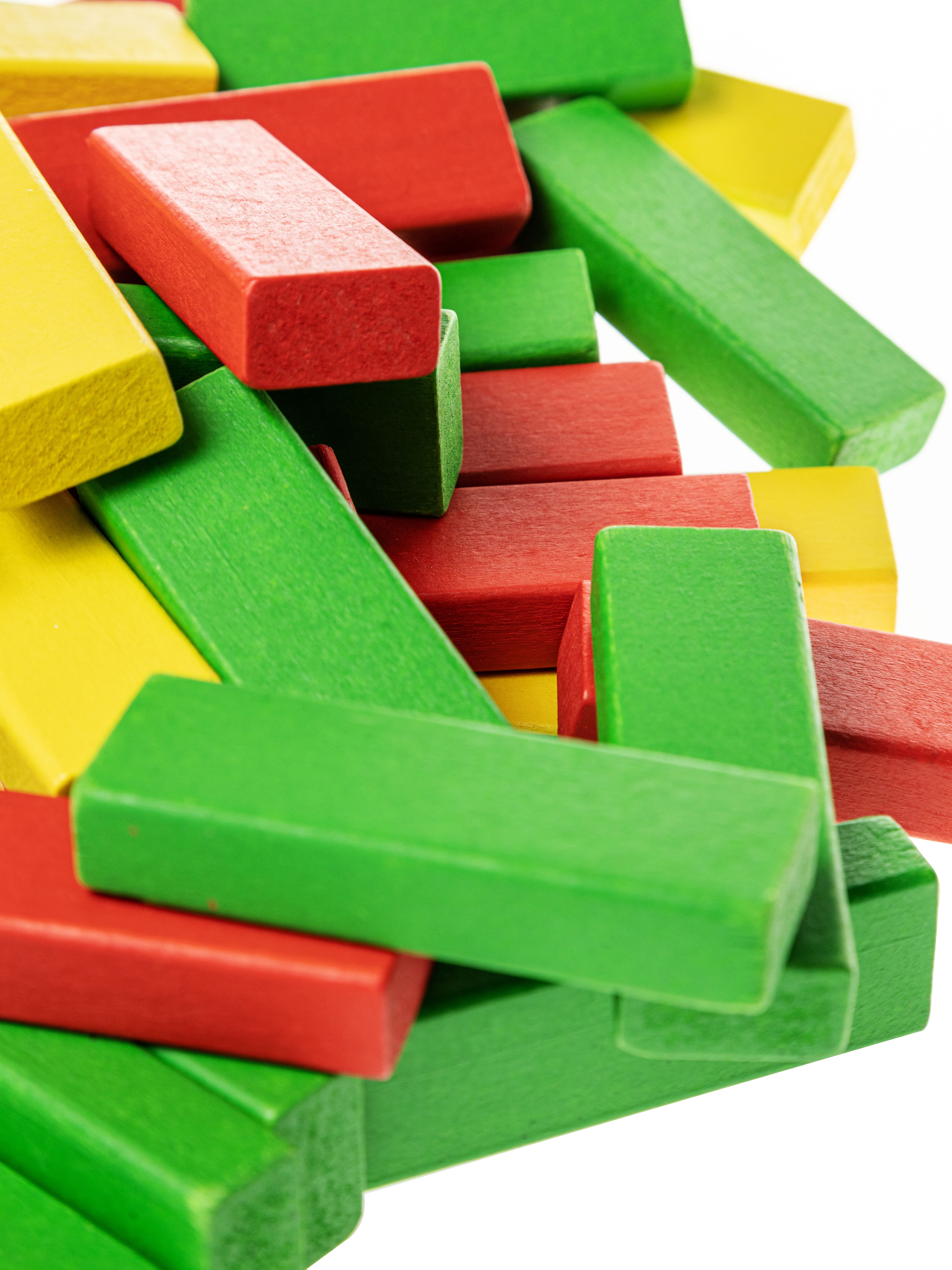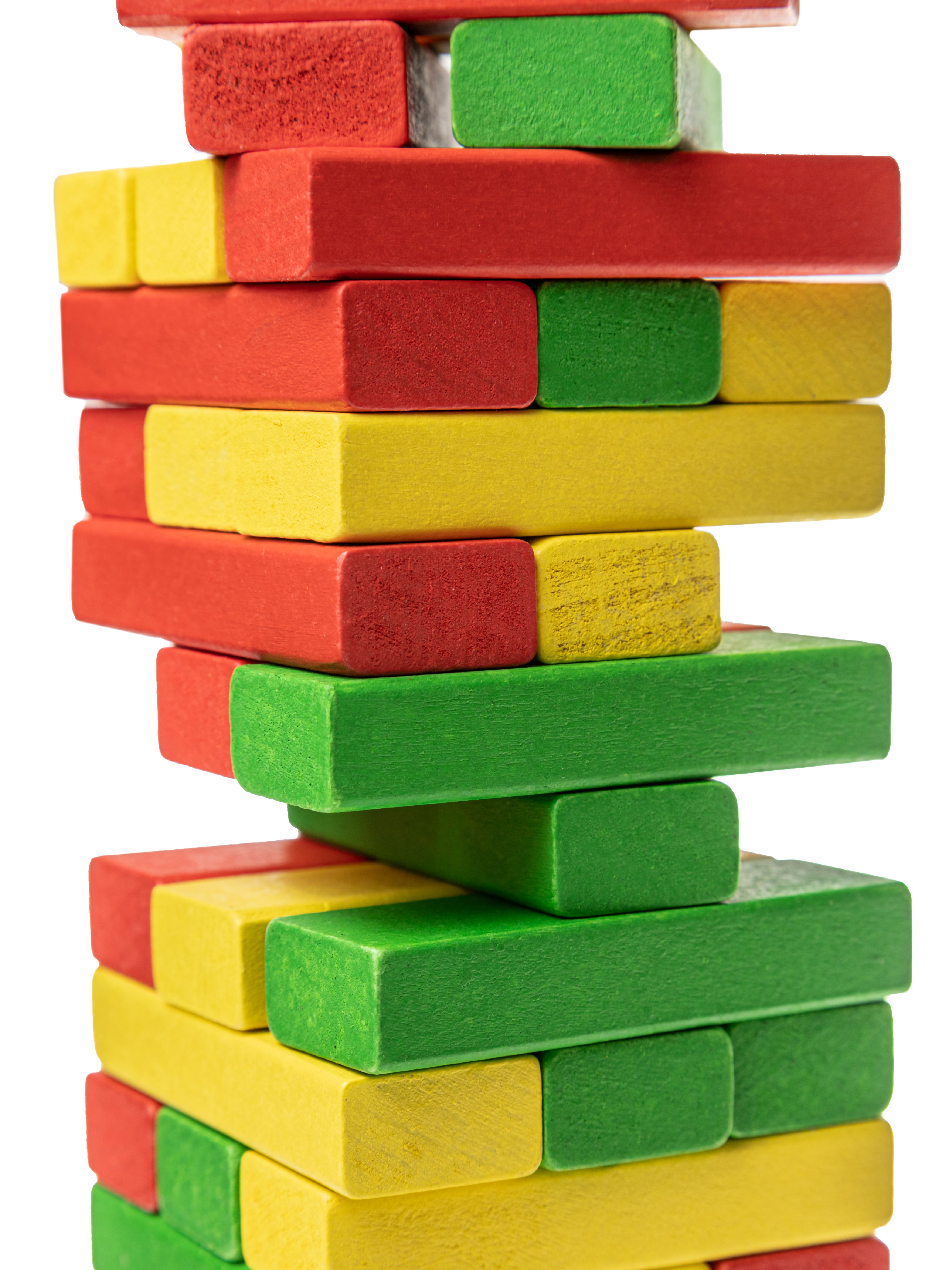 - Подготовка к игре: сложите из разноцветных брусков ровную пирамиду, используя специальный уголок, входящий в комплект игры. В каждом ряду должно быть три бруска как одного из 3-х цветов, так и разных, по взаимной договоренности.