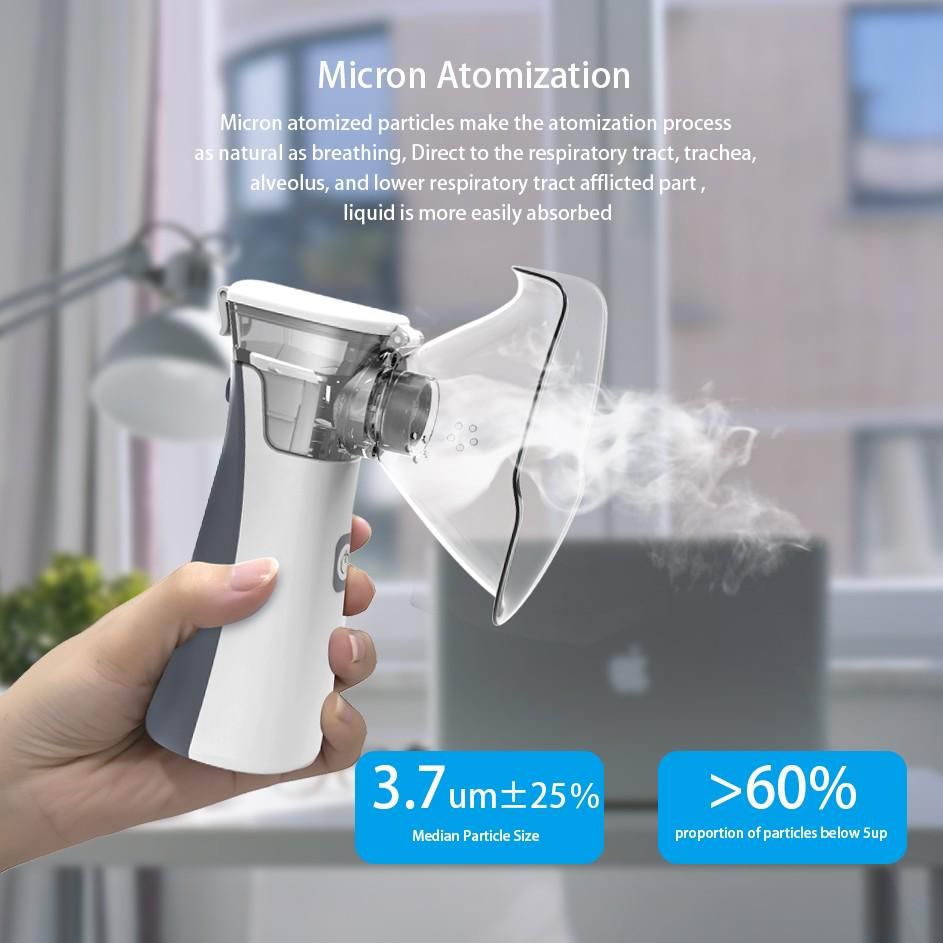 - Портативный сетчатый небулайзер – ингалятор легко управляется детьми, с помощью нажатия клавиши включения / выключения.