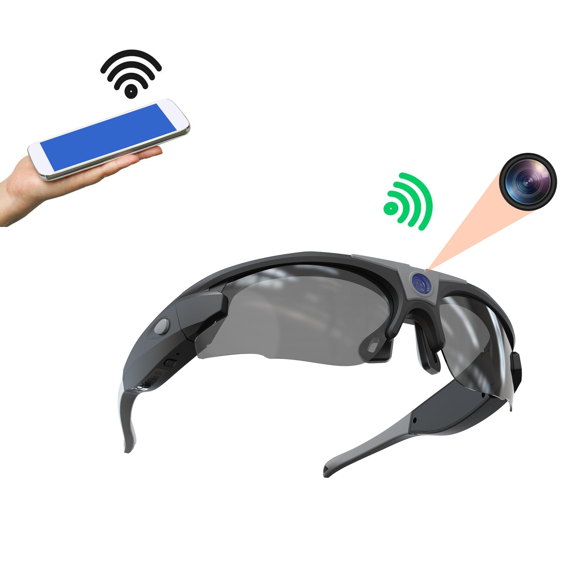 - Высококачественные солнцезащитные очки предназначены для потоковой передачи видео/аудио/фото по Wi-Fi в реальном времени на мобильный телефон с помощью мобильного приложения.