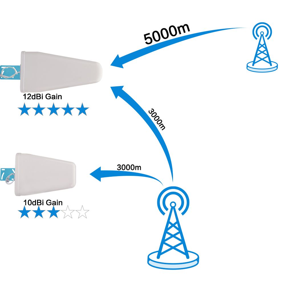 - Коэффициент усиления наружной антенны составляет 12 дБ.