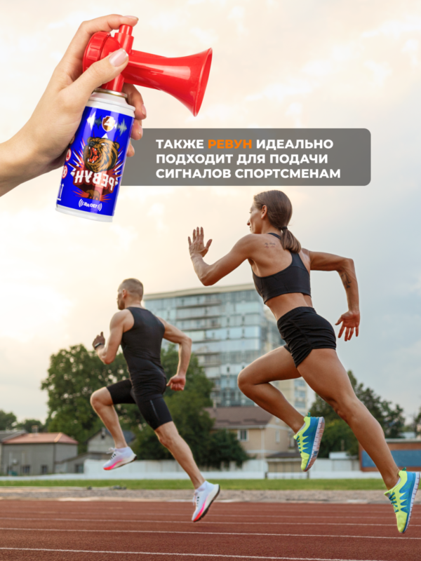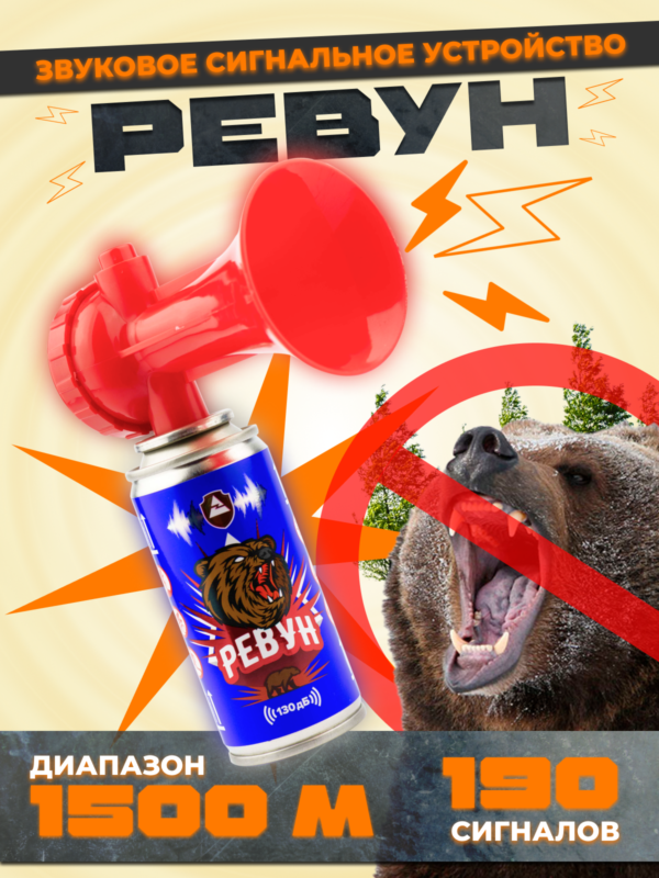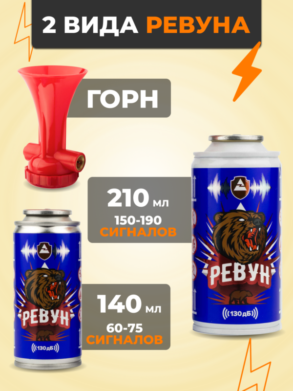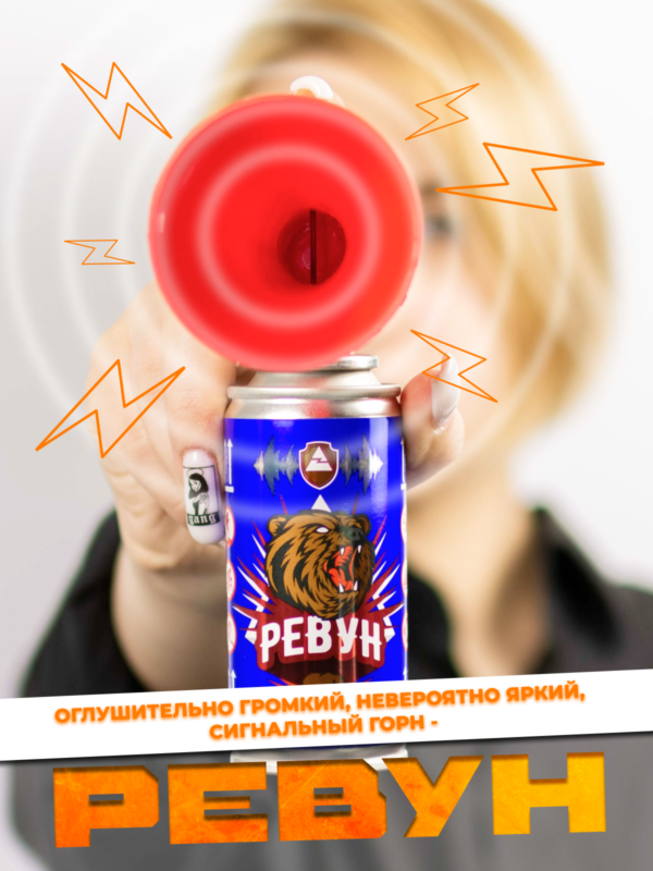- Очень простое в использовании: для подачи сигнала – держите баллончик строго вертикально (“горн” вверху) и резко нажмите сверху вниз на кнопку красного цвета в верхней части горна, чтобы издать резкий и ревущий сигнал с акустическим давлением до 130 дБ и диапазоном — до 1500 метров!